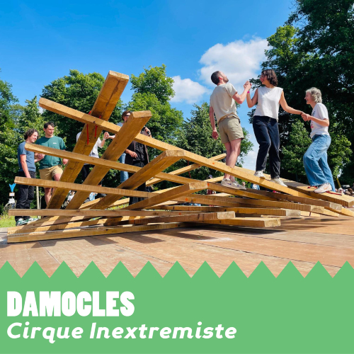 Le risque existe partout, tout le temps. Damoclès, c’est la démonstration de l’expérience collective face à un danger. A partir d’un tas de poutres de bois de 6 mètres et avec l’aide d’un public consentant, Fabrice Dominici donne corps à l’équilibre du groupe. Un jeu vertigineux et joyeux où il s’agira de tenir en équilibre, faire confiance et se faire confiance.