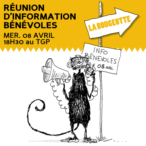 Afficher le planVous faites déjà partie de notre équipe de bénévoles, ou vous voulez intégrer notre équipe de bénévoles dans le cadre du festival La Bougeotte 2026 ?? Nous avons besoin de bras, de jambes et de têtes avant et pendant le festival ! Nous vous donnons rendez-vous le mercredi 8 avril à 18h30 au TGP pour une réunion d'information lors de laquelle Aline vous présentera les actions prévues autour du festival, aussi bien en amont (pour préparer ce grand moment festif) que pendant les trois jours de la Bougeotte, les 29, 30 et 31 mai prochains.